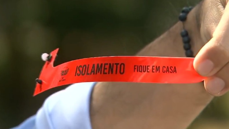 A pulseira da cor vermelha tem os dizeres “isolamento fique em casa” e é colocada e retirada exclusivamente por agentes de saúde. Segundo a prefeitura, o uso é obrigatório e irá ajudar a fiscalização das pessoas que cumprem o período de isolamento.