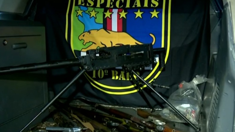 “Foi feito um trabalho de inteligência das equipes do 10º Baep. O indivíduo realizava a manutenção do armamento para o crime organizado. Foi feito um trabalho de deslocamento para o local e foi constatado que ele tinha diversos armamentos, incluindo a metralhadora antiaérea, além de outras armas. Isso tudo do crime organizado, que ele fazia parte. Ele fazia a manutenção e deixava pronto para uso’, disse o Capitão Johnny Gomes da Silva.