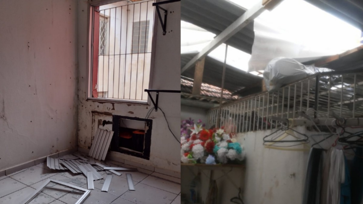 Uma loja de ternos também foi vítima da ação dos criminosos. Eles não conseguiram entrar, mas quebraram uma janela de alumínio e vandalizaram o estabelecimento. Segundo a proprietária, essa é a 10ª invasão na loja.