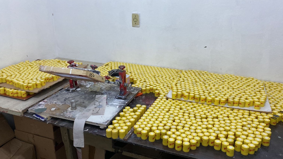 De acordo com as investigações, os criminosos atuavam de forma separada: em um local eram pintadas as tampas, em outro espaço eram feitos os rótulos, e em um terceiro ficavam os produtos falsificados.