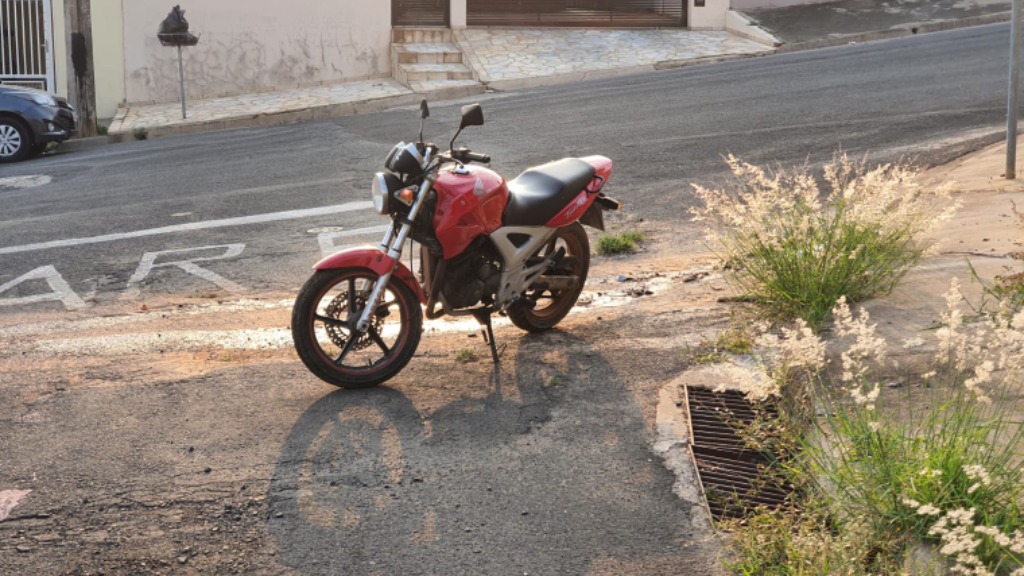 A moto Honda CBX-250 Twister, cor vermelha, furtada na madrugada de segunda-feira (20), no bairro Nova Jaguariúna II, em Jaguariúna, foi abandonada nesta terça-feira (21) em uma esquina próxima ao imóvel. O furto aconteceu em frente à casa da vítima, na Rua Vitório Búfalo, e foi registrado por câmeras de segurança.