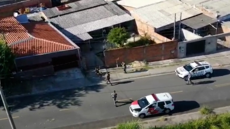 Após serem cercados pelos policiais, os suspeitos tentaram fugir a pé em um córrego que margeia o bairro. Com a ajuda do helicóptero águia, os homens foram localizados.