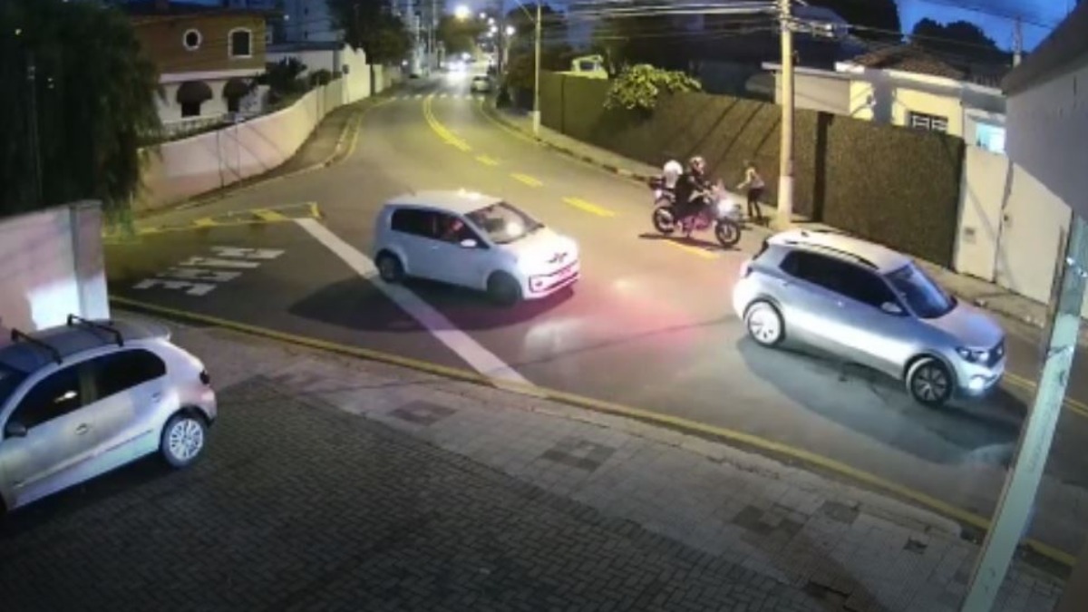 Uma motociclista se acidentou na noite de segunda-feira (4) em Vinhedo após se prender em fios de telefonia suspensos. Imagens registradas por uma câmera de segurança mostram o momento em que a mulher passa pelo local, na Avenida Nove de julho (veja vídeo abaixo).