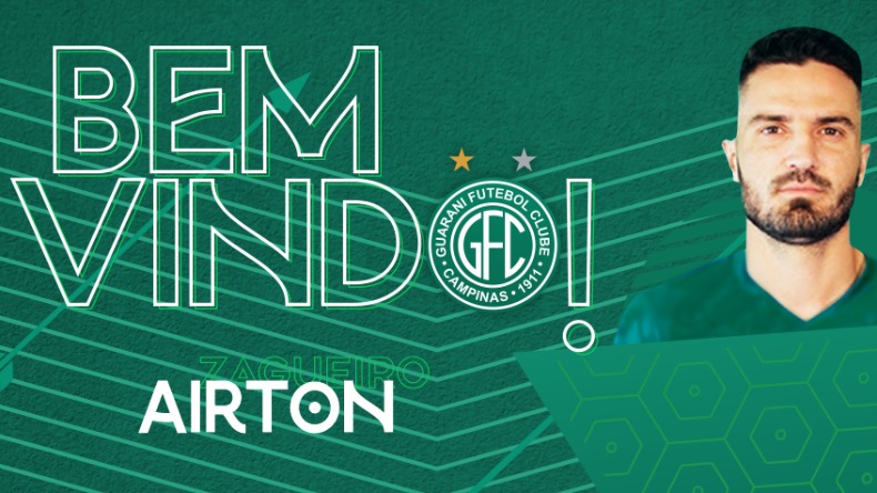 O Guarani confirmou a contratação de mais dois jogadores nesta quinta-feira (18). O zagueiro Airton e o meia Rodrigo Andrade vão reforçar o elenco até o final da Série B do Campeonato Brasileiro de 2021.