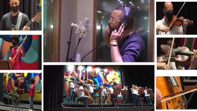 A produção reuniu participações gravadas remotamente de Dudu Nobre, no Rio de Janeiro; do Instituto Anelo, dos ritmistas das escolas de samba, assim como dos diversos naipes da Orquestra Sinfônica Municipal de Campinas, composta de cordas, madeiras, metais e percussão. Os registros foram editados e mixados em Campinas.